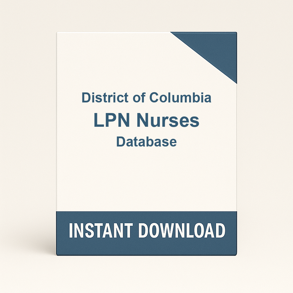 A: This verified product is a complete, up-to-date, downloadable list of all licensed LPN Nurses in District of Columbia. Often referred to as a database, directory, or mailing list, it contains the professional contact information you need for direct marketing campaigns, recruitment, market research, partnership outreach, or networking with District of Columbia medical professionals. The file is available for instant download immediately after purchase.