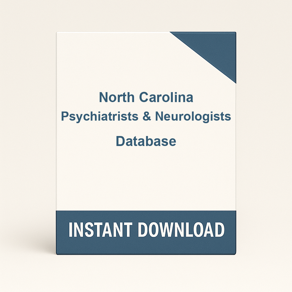 A: This verified product is a complete, up-to-date, downloadable list of all licensed Psychiatrists & Neurologists in North Carolina. Often referred to as a database, directory, or mailing list, it contains the professional contact information you need for direct marketing campaigns, recruitment, market research, partnership outreach, or networking with North Carolina medical professionals. The file is available for instant download immediately after purchase.